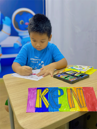 Theo phương pháp mới này, các bé sẽ học từ vựng thông qua hoạt động tô màu và sáng tạo nghệ thuật. Mỗi từ mới được gắn liền với một màu sắc cụ thể, giúp trẻ ghi nhớ nhanh gấp đôi so với cách học thông thường. Không chỉ dừng lại ở việc tiếp thu ngôn ngữ, phương pháp này còn kích thích khả năng sáng tạo và phát triển tư duy thẩm mỹ ở trẻ.