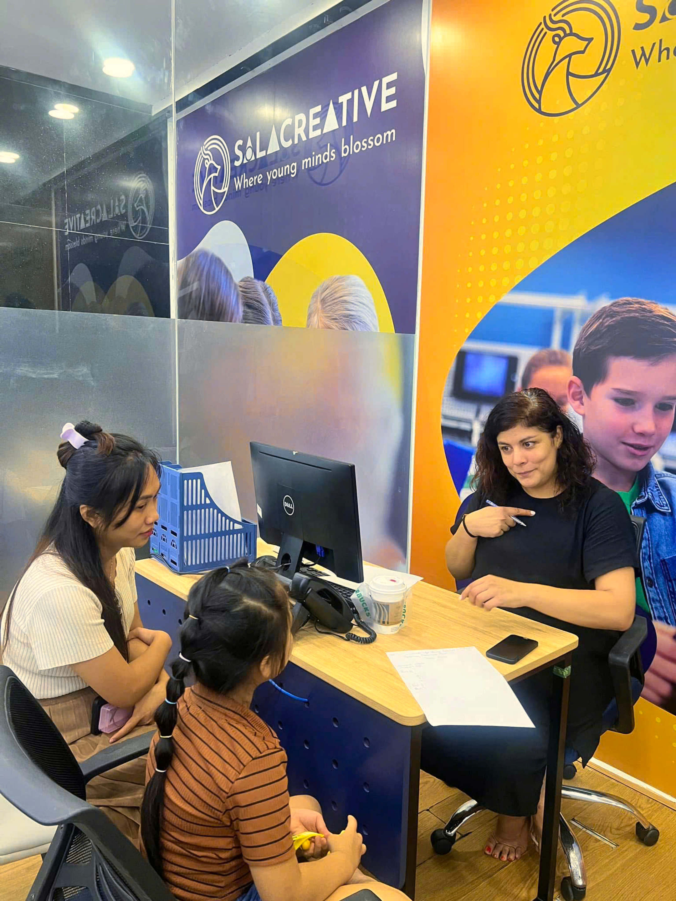 Nắm bắt xu hướng toàn cầu, chuyển đổi số trong kiểm tra, đánh giá năng lực tiếng Anh đã trở thành xu thế tất yếu trên toàn cầu. SALACREATIVE triển khai chương trình kiểm tra năng lực tiếng Anh với bài kiểm tra được thiết kế khoa học, phù hợp với trẻ em châu Á từ các chuyên gia hàng đầu đến từ Hàn Quốc. Đồng thời, SALACREATIVE miễn phí tất cả các buổi kiểm tra năng lực để tạo điều kiện cho ba mẹ nhận được bảng điểm chính xác nhất – bước đi quan trọng nhất trong hành trình học ngoại ngữ.